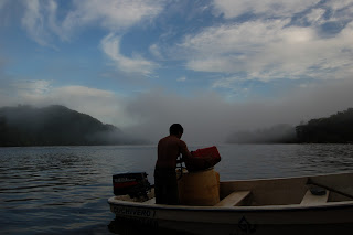 Bien, y a pesar que la parada en Boca de Nichare fue deliciosa y me rindió tanto que hasta tuve chance de pintarme la cara cual nativa, lamentablemente llegamos a El Playón casi a oscuras. Justo hasta allí el río Caura es navegable. La noche cerró, pero los relámpagos, uno tras otro, abrían grietas en el firmamento para dar paso a magníficos destellos que iluminaban de manera intermitente un paisaje que, entre la penumbra, se adivinaba sencillamente maravilloso.